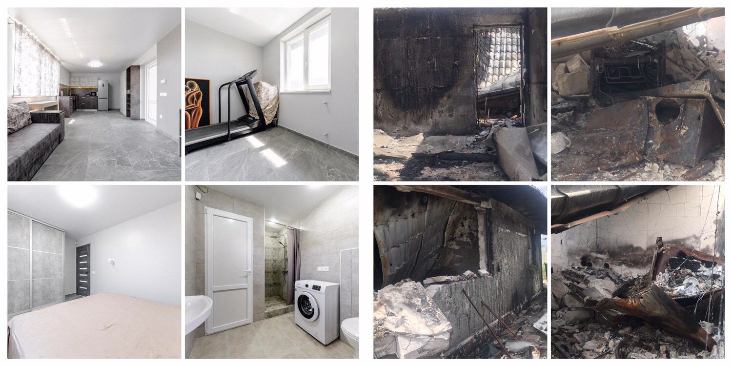 She found the remains of her home, both houses destroyed. The guest house was demolished, but the main house remained structurally intact, yet heavily destroyed. Russians had invaded her town, using the homes in her neighborhood as bases. Demolishing some of them for fun, and quartering in others.